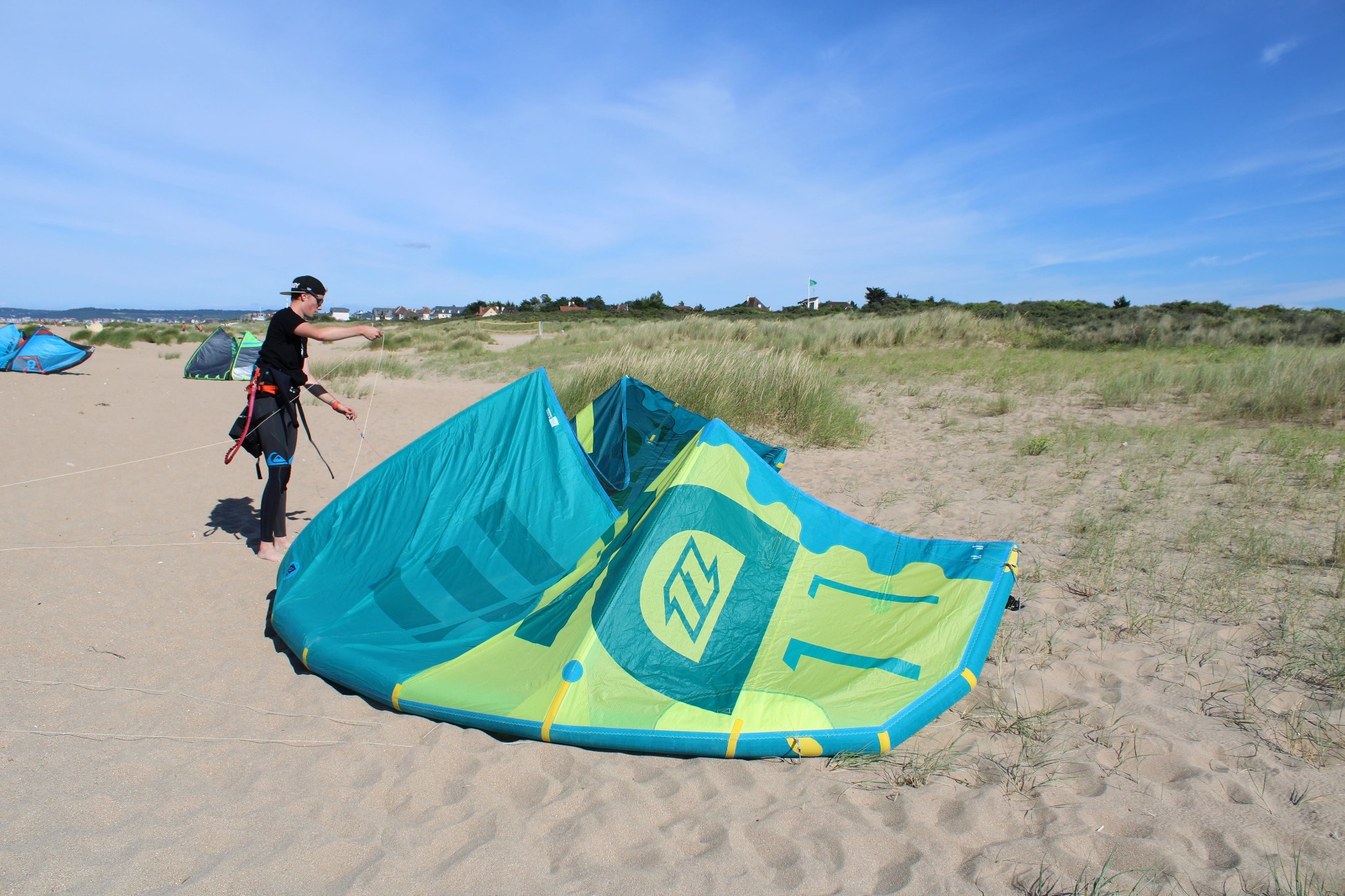 Ensuite le choix de l'école est très important, tu dois faire le tour des écoles du coin, profiter des réseaux sociaux pour savoir les écoles qui sont recommandées ou justement à évitées, j'ai même été discuter avec les moniteurs pour voir avec qui je me sentais à l'aise. Habitant dans le Calvados et pouvant profiter d'un des plus beaux spots du département (Merville-Franceville) je me suis dirigé vers l'école KITE R EVOLUTION où Damien et son équipe vous accueils toute l'année pour des cours de tout niveau, en groupe ou individuellement.